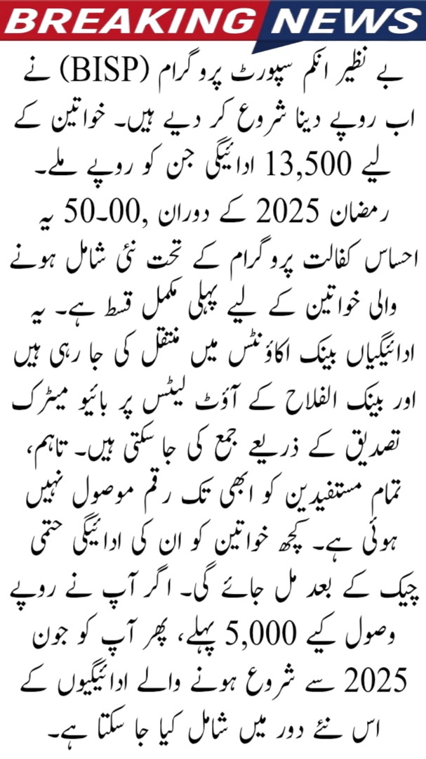 BISP Payment of 13500 Update for Ramadan Beneficiaries June 2025