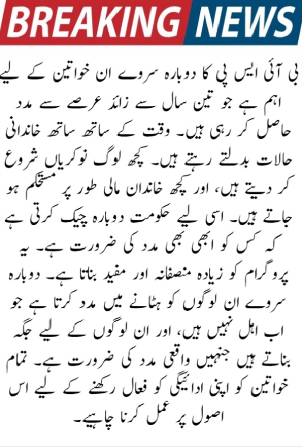 The BISP re-survey in 2025 is important for women who have been receiving help for more than three years. Over time, family situations change. Some people start jobs, and some families become financially stable. That’s why the government checks again who still needs help. This makes the program more fair and useful. The re-survey helps to remove people who no longer qualify, and makes space for those who really need support. All women must follow this rule to keep their payment active.