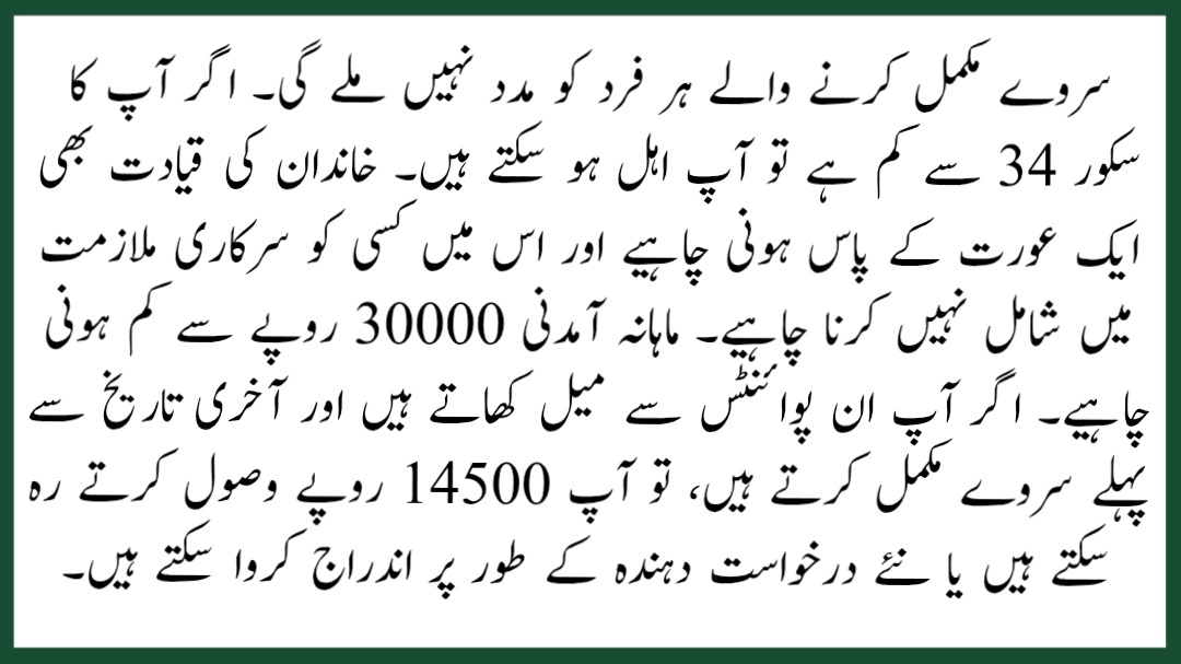 Not every person who completes the survey will receive help. If your score is below 34, you may qualify. The family must also be led by a woman and should not include anyone with a government job. Monthly income must be under Rs 30000. Widows or families with disabled people also have better chances. If you match these points and complete the survey before the deadline, you can keep receiving Rs 14500 or get enrolled as a new applicant.